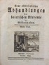 Abhandlungen der Churbaierischen Akademie der Wissenschaften. Ersten Bands II. Theil. Welcher die philosophischen Abhandlungen in sich begreift. (München), 1763. 4to. 232 S., 5 Bl. Mit 9 gefalteten Kupfertafeln. Moderner Umschlag. Nur mit dem Bandtitel ohne Druckvermerk.- Enthält: 1. LAMBERT, J. H. Abhandlung Von dem Gebrauche der Mittagslinie Beym Land- und Feldmessen. - Vgl. DSB VII, 595 ff. - 2. OSTERWALD, P. v. Kurze Einleitung, wie die geometrischen Operationen Bey Aufhebung geographischer Landkarten vortheilhaft, genau und zuverläßig anzustellen. - 3. KENNEDY, I. Abhandlung von den Morästen (NDB XI, 492). - 4. WOLTER, J. A. v. Nachricht von dem Torf worinnen bewiesen wird, daß der Rauch des Torffeuers der Gesundheit nicht im mindesten schädlich sey. - 5. SCHEIDT, C. A. Versuch einer pracktischen Anleitung Steinkohlenlager in ihren Gebürgen aufzusuchen, und dieselben zu bearbeiten. - 6. SCHÄFER, J. Chr. Abbildung und Beschreibung zweyer wahren und falschen Versteinerungen. - Gering gebräunt, Bandtitel mit kl. Stempel.
