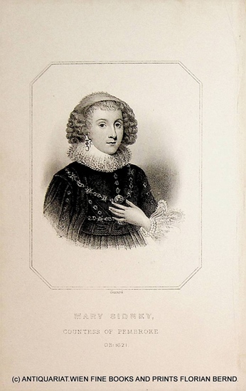 Sidney (Herbert), Mary Mary Herbert, Countess of Pembroke n?e Sidney (1561-1621) c. 1850. original steel engraving, sheet size approx. 17 x 10,5 cm, condition: good. Portrait Steel engraving, original antique engraving, no book.